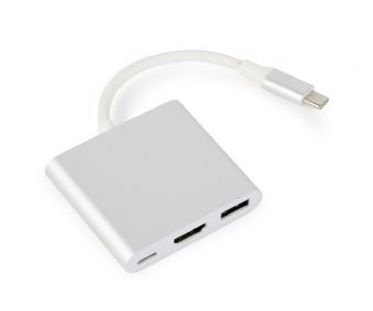 USB hub typ C, multi adaptér - HDMI / USB 3.0 / USB typ C, strieborný, GEMBIRD